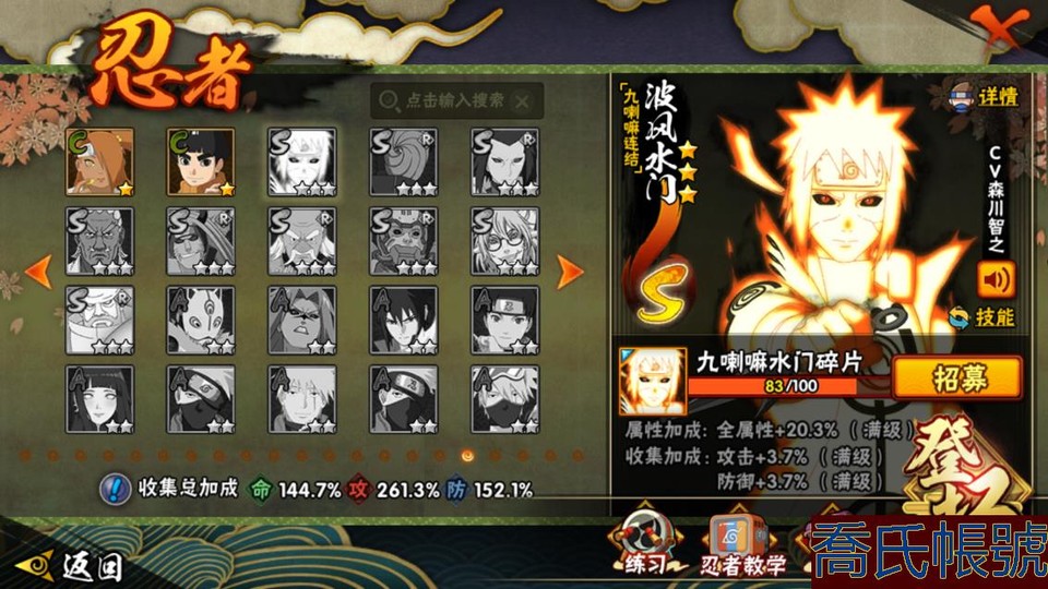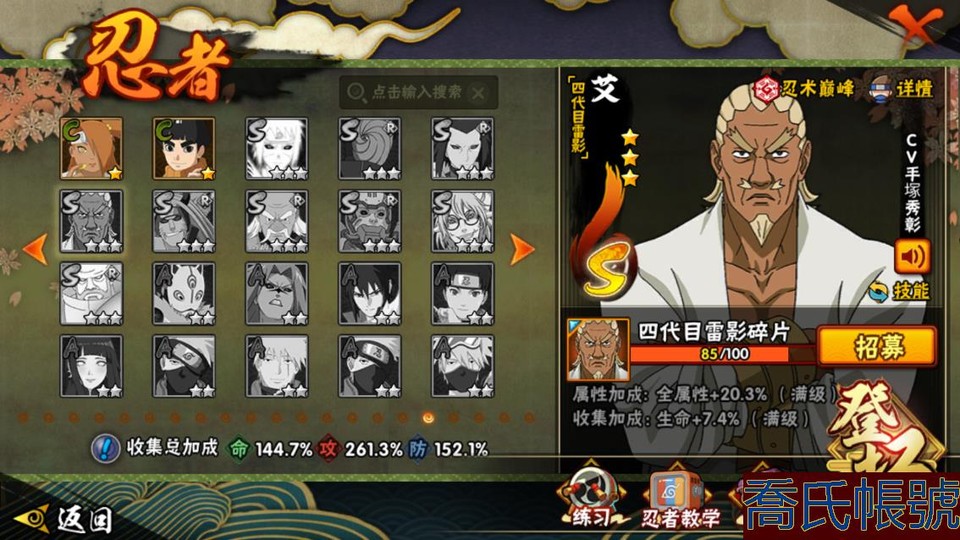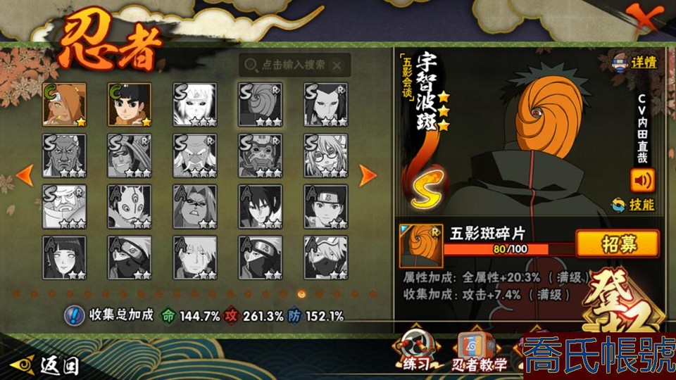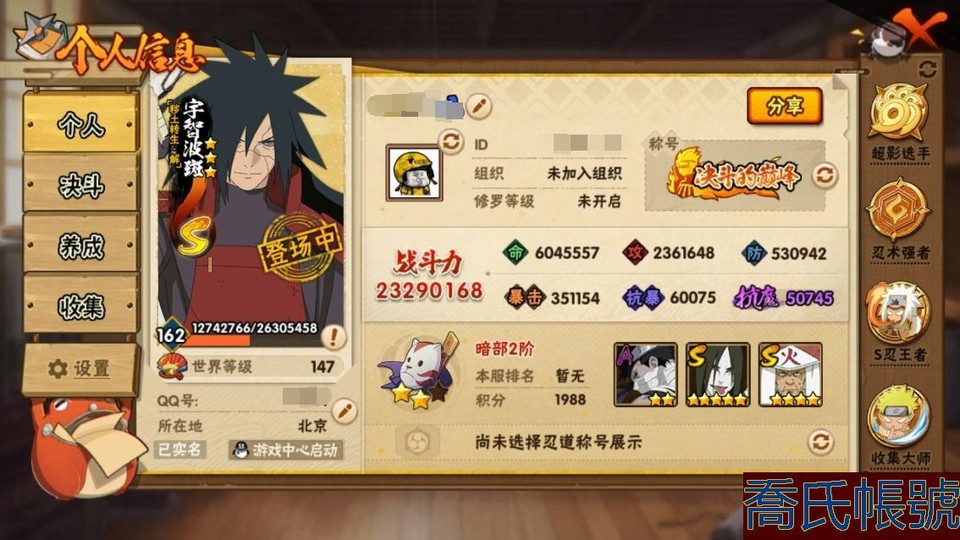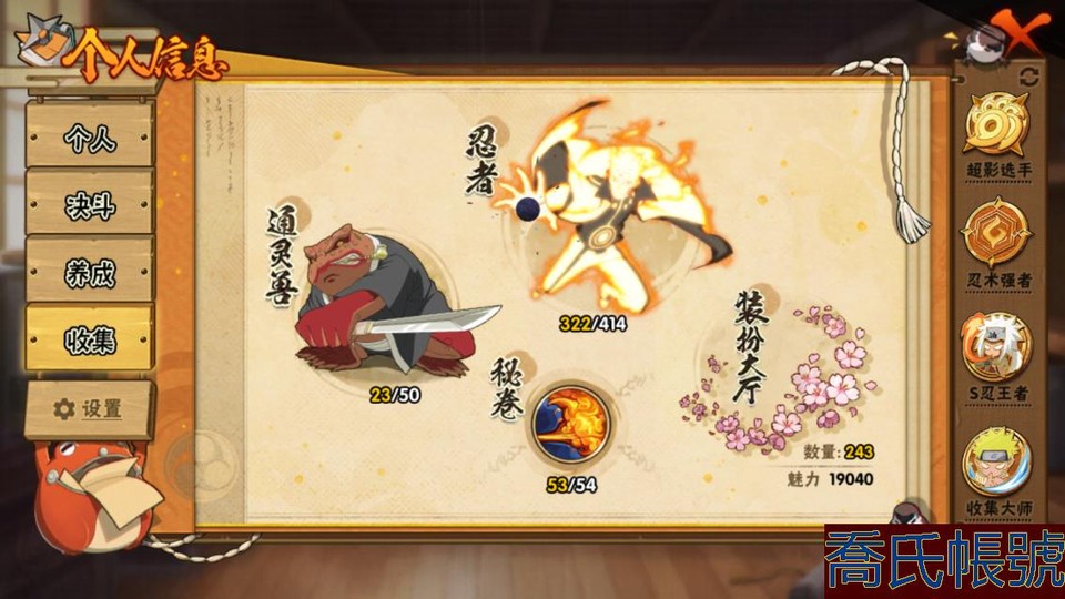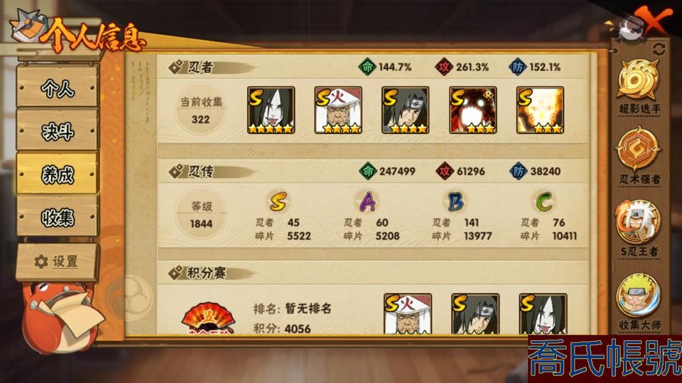 【11等】VIPV13級;S忍45個;A忍60個;通靈獸23個;S忍:傳說中的三忍自來