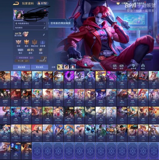 【Garena帳有綁定、戰場傳說、V8、125英、429造】綁定乾淨 單手機 超多造型 V8快V9 全英雄 429造型 超級稀有