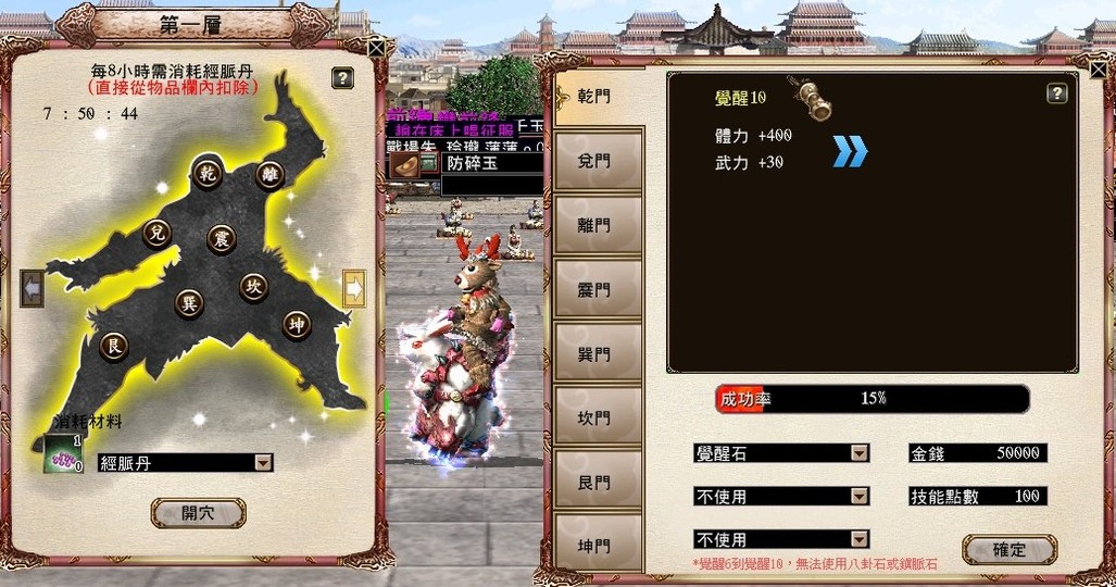八門:第一層5門覺10 3門覺5以上 第二層都覺5