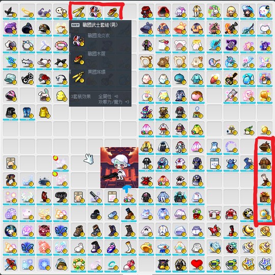 另外稀有戰國武士套組(男)正品無魅力 (套裝效果+8全+3攻 ) 4000T