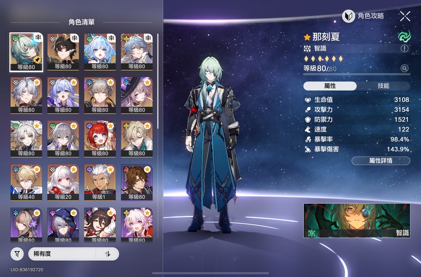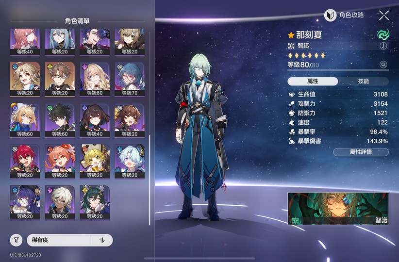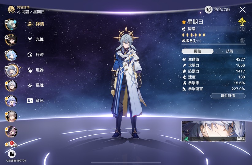 【男、60等、40金角、10金專】19限五,21白厄、飛霄,10緹寶、知更鳥,01星期日、大黑塔、archer,砂