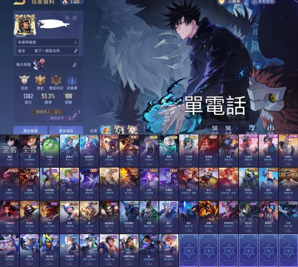 【Garena帳有綁定、鉑金、V7、50英、98造】潘因伏黑惠 菫釘崎 森圖妖與秘聞 提米狸貓 多直購造型 單電話 可議