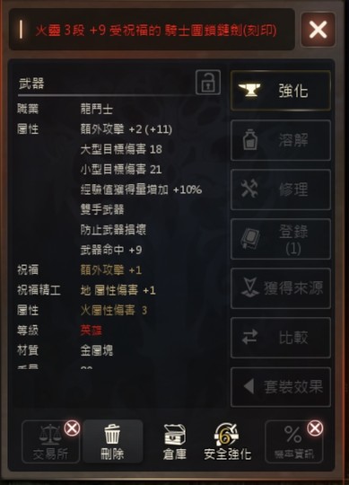 加九紅武,雙加九魔族武器;