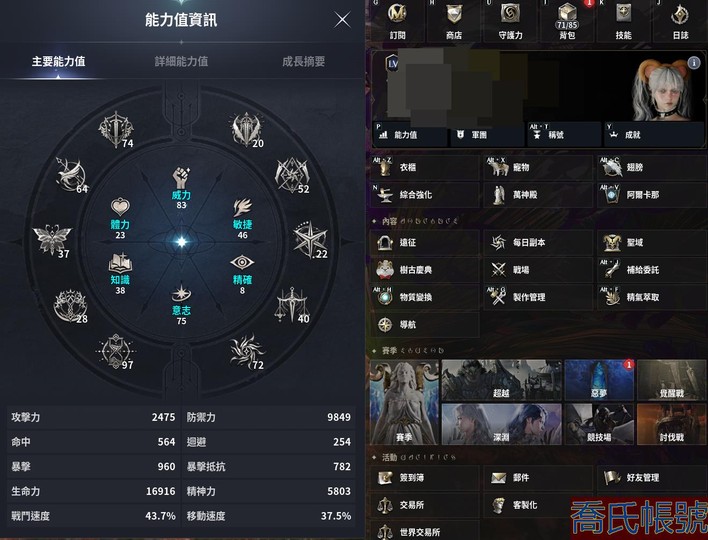 【11等】45級天族女魔道星,裝等2549,守護力600,卡牌1金1藍3綠,支線進度全滿