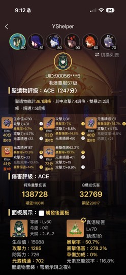 【女、57等、65金角、33金武】台港澳服-主打完整月綻放、火神2+1、綾華6+1夜蘭6+1、崩鐵流螢6+5