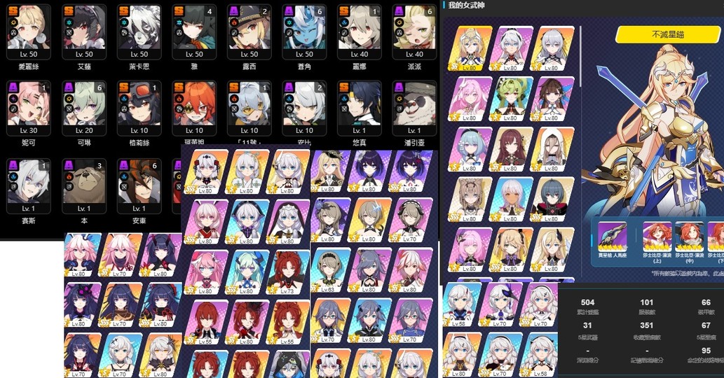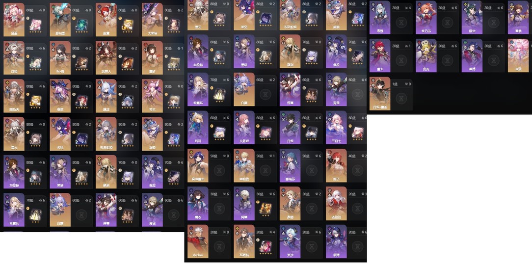 角色練度除了主要幾隻打通深淵跟劇詩的也是待培養