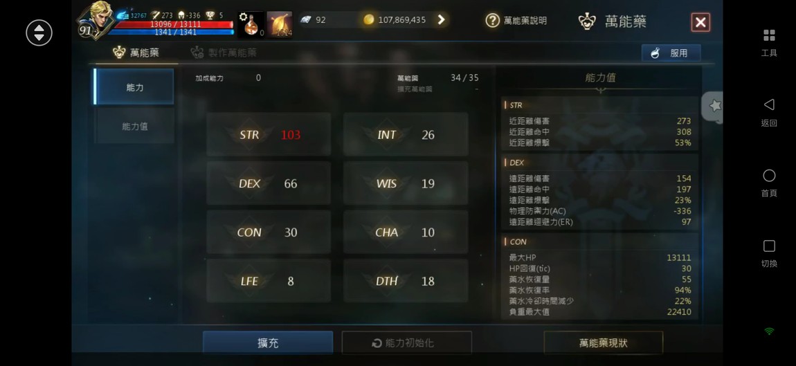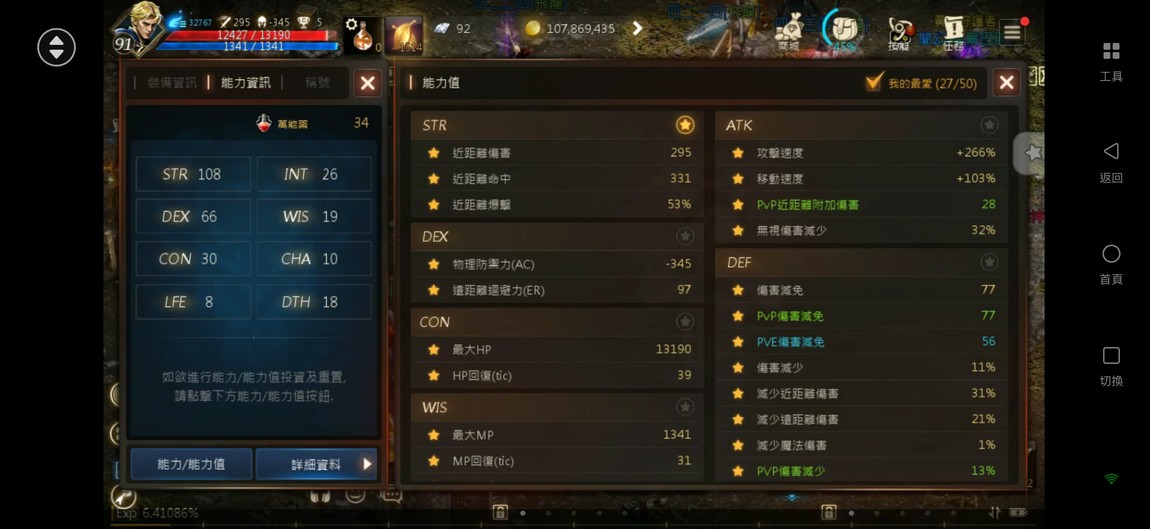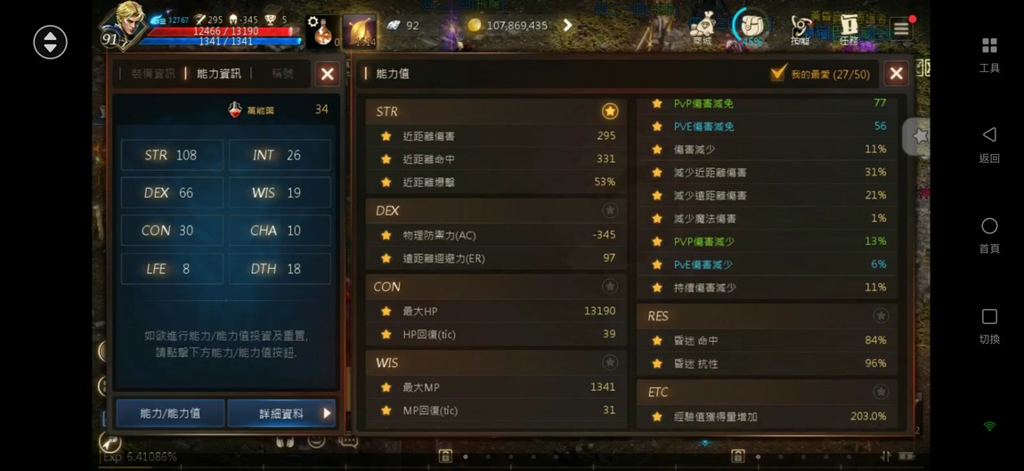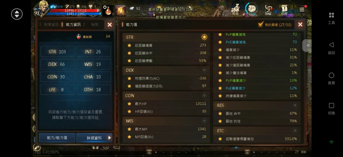 輸出:攻命295/331、防345、減傷79、PVP減傷77、暈命84%、暈抗96%