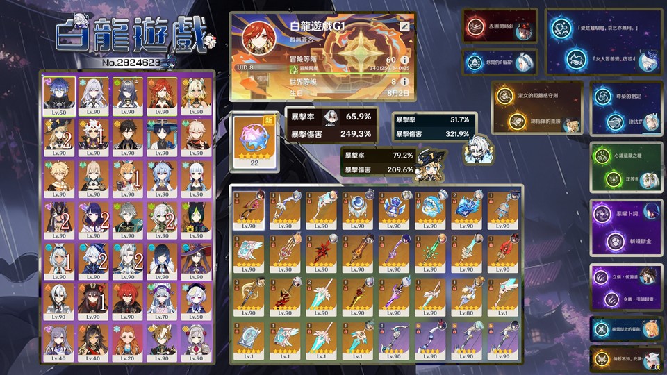 【男、60等、54金角、32金武】G1_愛可菲1+1那維2+2菈烏瑪0+1草神2水神2雷神2+1_菲林斯火神絲柯克