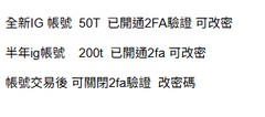 全新IG 帳號 50T 已開通2FA驗證 可改密