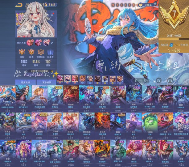 【Garena帳有綁定、璀璨傳說、V7、101英、152造】現璀璨 利姆路 禰豆子 亞絲娜 狂厄 龍騎士