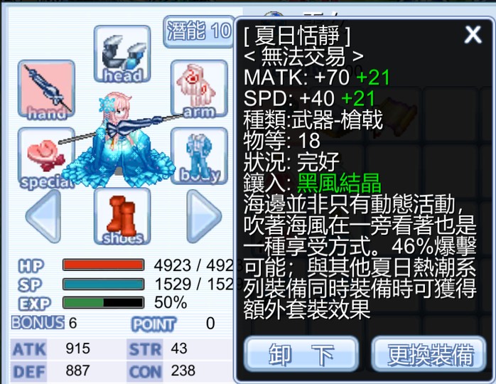 135轉雪女/潛10/SWA都洗乾了/主I副C標準雪女(已吃6能力丸)/有愛心胸針/商城綠鑽純屬手腳/46%法爆武器