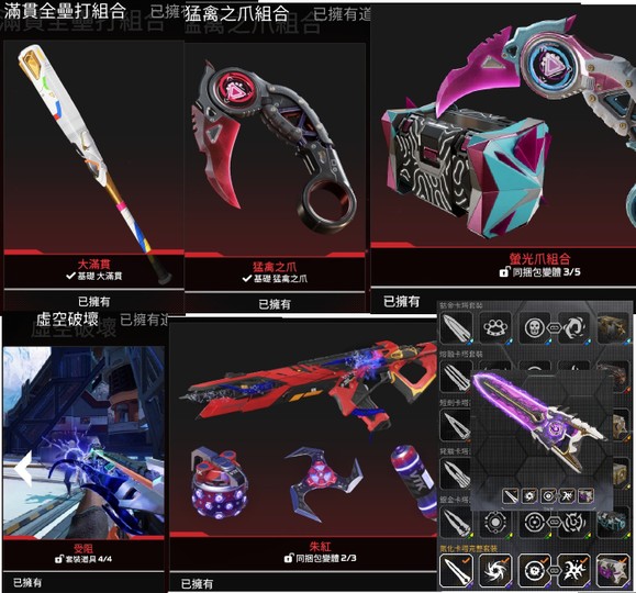 通用有毀滅劍R5、卡塔、球棒(原版)、爪刀(原版+螢光)、雙刀(櫻花)