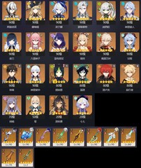 【女、60等、22金角、10金武】40金_水龍王專_雷神專_夜蘭專_C1鍾離_已畢業