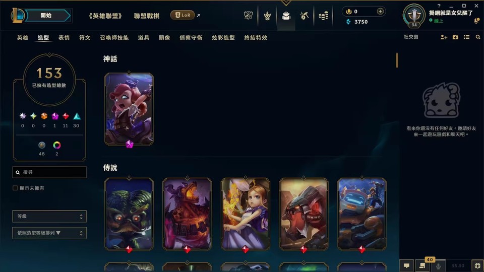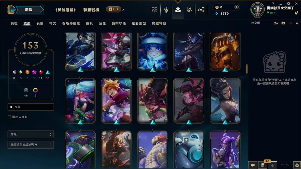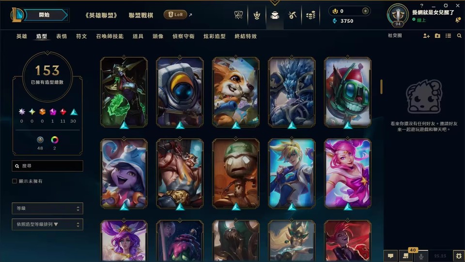 【94等、未定級、134英雄、153造型】⚡豪恒工作室⚡成品精品賬號,153皮,未驗證信箱,可改綁