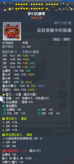 【夢幻的腰帶】雙傳26星39%智夢幻的腰帶 附加+266智 白5均13.44攻~