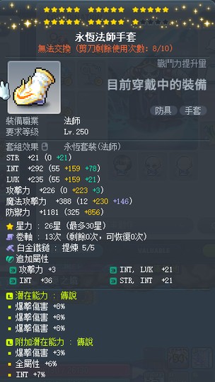【永恆法師手套】大六排26星四爆永恆法師手套 26星4爆76智永恆法師手套 白5均11~