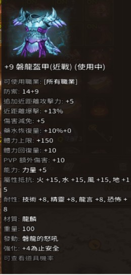 +9磐龍盔甲(近戰)