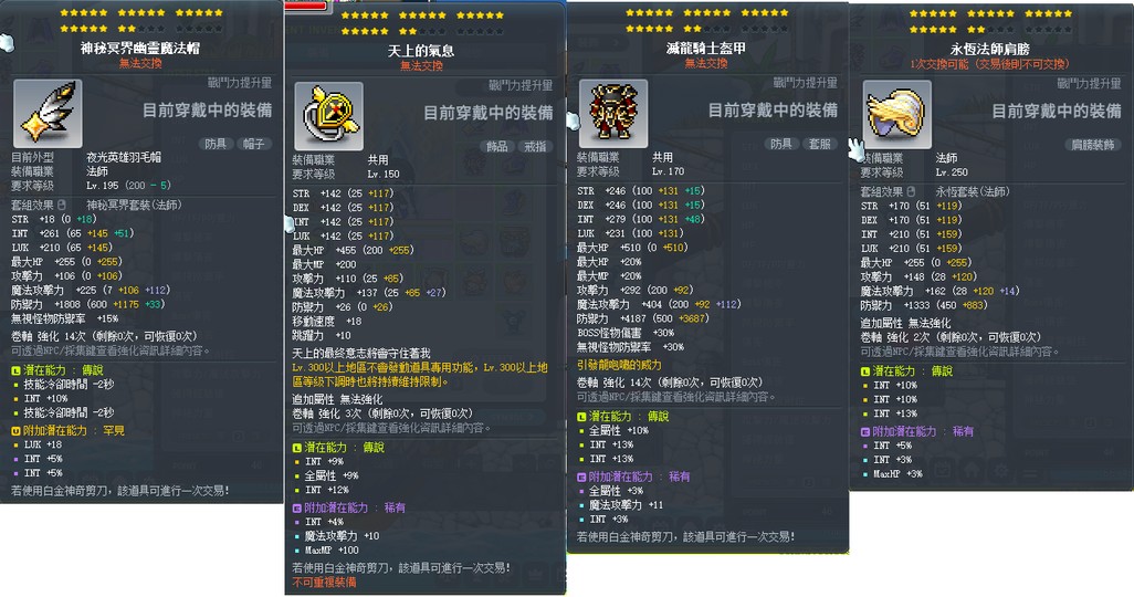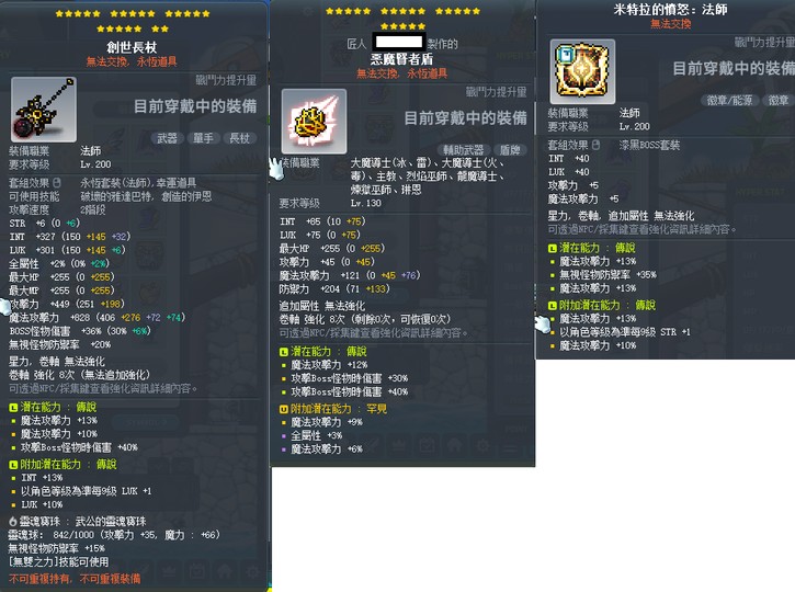 有附掉寶裝跟楓幣裝(200%掉寶 100%楓幣 其中有三件雙掉跟兩件雙楓可以交易)