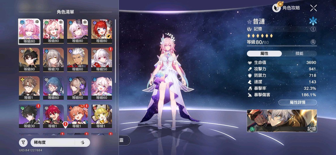 【男、65等、9金角、2金專】崩鐵帳號