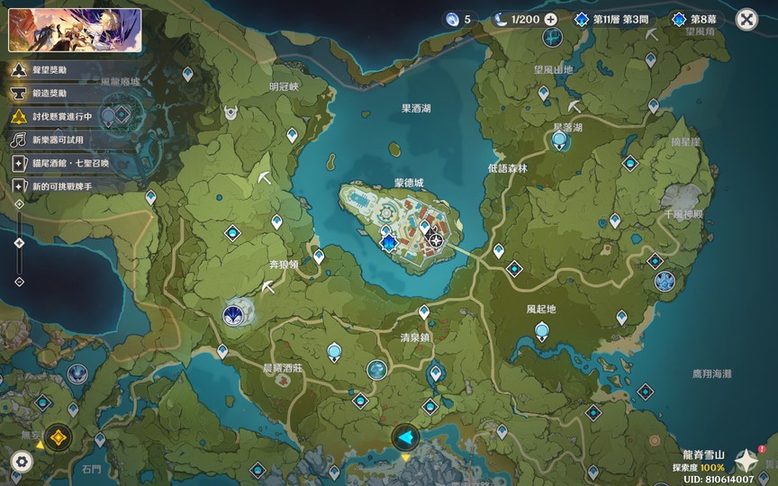 地圖主要只有開蒙德 璃月 其餘沒有特別開大部分都50%一下