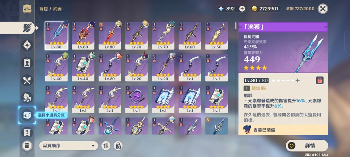 【女、50等、5金角、0金武】雷神+綾華,都是0+0