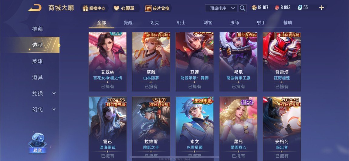 【Garena帳無綁無連、璀璨傳說、無VIP、52英、71造】傳說對決0201