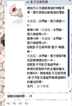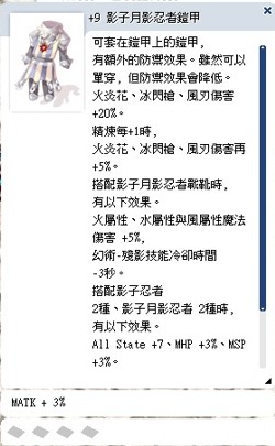 +9月影靴(速4%)、+9月影鎧甲(METK+3%)、+6忍術耳環(變詠3)