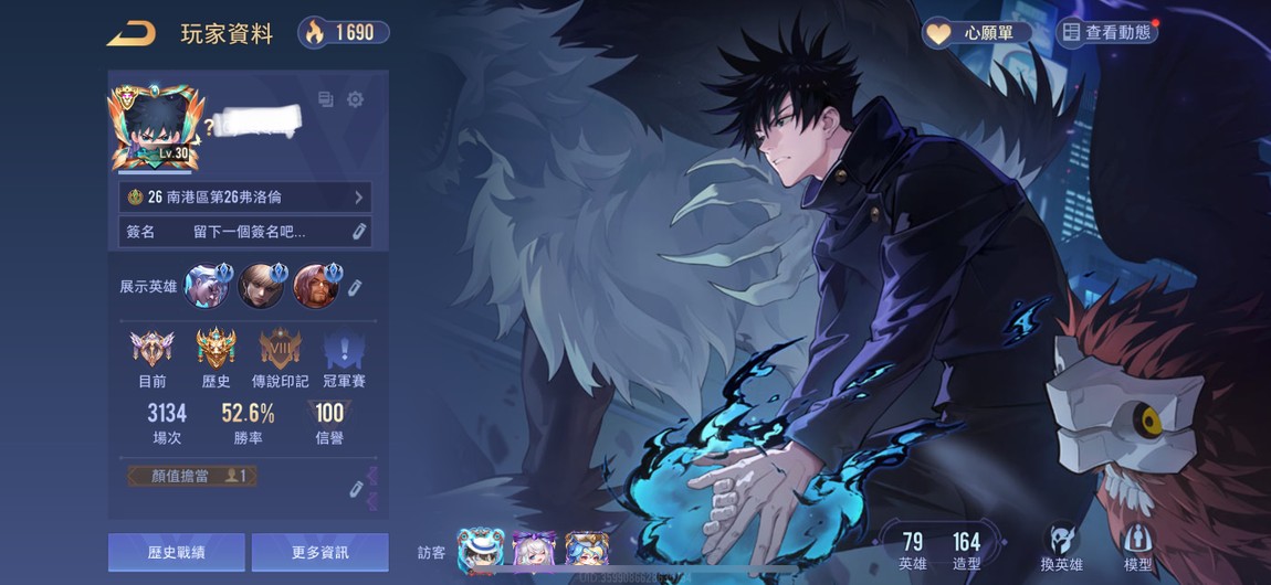 【Garena帳有綁定、星耀、V8、79英、164造】伏黑惠、星際、朔月、新年多造型