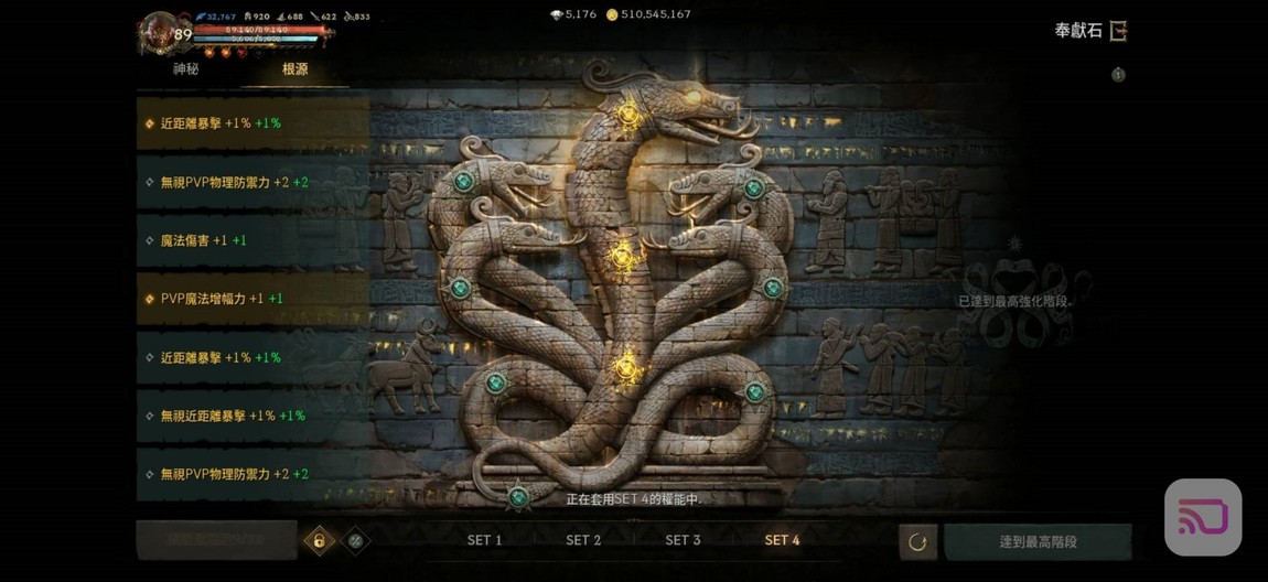 4階段鷹眼、卓越抵抗5階段護甲、經驗、最終抵抗
