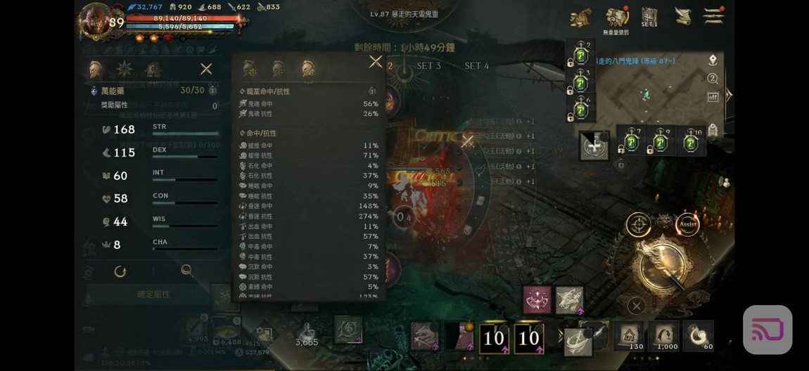 【鬼劍士、89等、台服】89.30% 14粉 17金 最高攻命630/834 防920 減傷417 1金