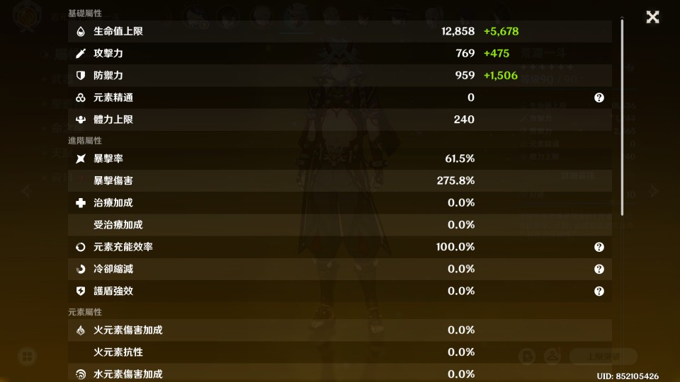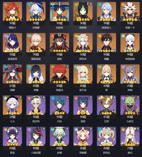 【女、60等、26金角、11金武】G6_火神0+1夜蘭0+1雷神0+1萬葉0+1一斗0+1水神散兵綾人_糾纏80顆