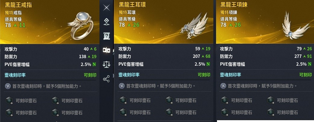 魔2吉凱爾 黑龍王金裝飾品(戒指、耳環、項鍊)、防具、武器