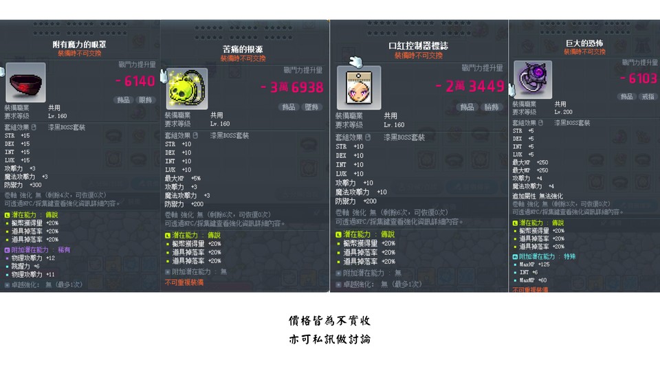 【各式掉寶裝一套滿楓滿掉 200%掉寶 100%楓幣】各式掉寶裝 一套滿楓滿掉 200%掉寶 100%楓幣 力 敏 智 幸 全屬HP