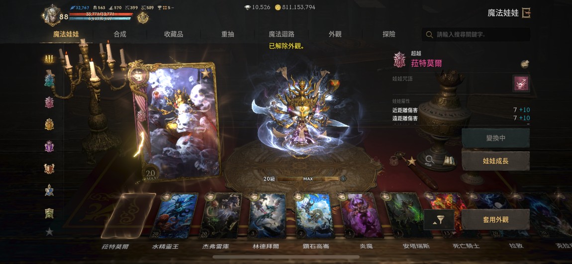 【總收藏】: 34.77% (遠傷+69、遠命+90、敏捷+25、物防+107、減傷+34)