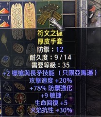 黃手套/非手工手套(2標/20攻速/9敏/5生命回復/30火抗)-非天梯