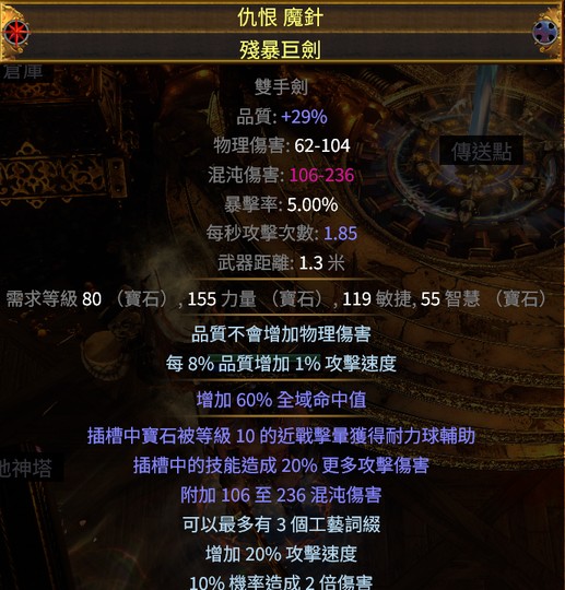 致命的驕傲 (5%力*2 擊中盛怒*1 2倍傷*2 50%冰雷轉火承受)