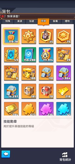 帳號內有存英雄經驗值&英雄碎片,可依後續欲培養隊伍直接進行升級。