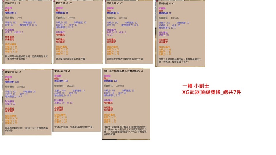 武器_小劍士逆天XG武器 7把便宜出清_更新2025/12/02