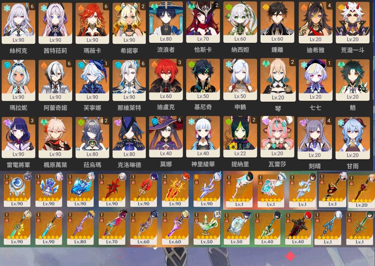 【男、60等、33金角、22金武】🔥原神4限定滿命號 6+5斯科克 6+4火神 6+1龍王 6+1僕人