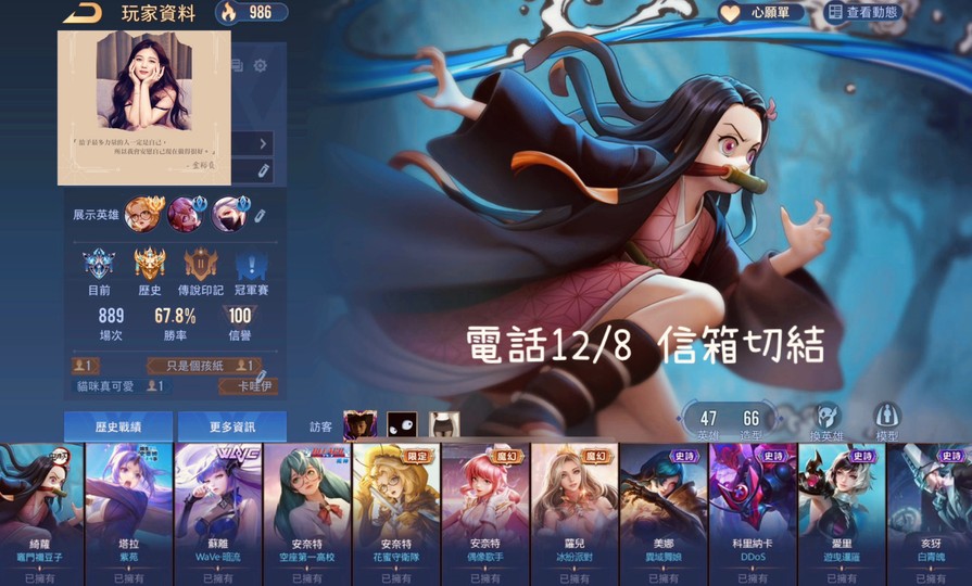 【Garena帳有綁定、鑽石、V5、47英、66造】多聯動 全服安奈特 鬼滅彌豆子 Wave女團 多直購 偏女用