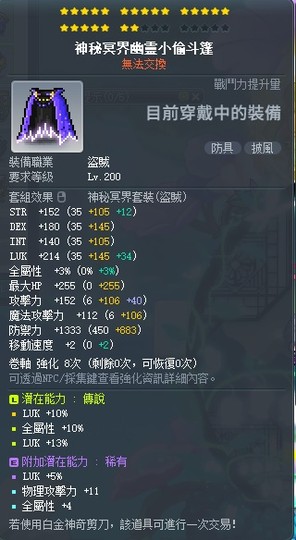 【神秘冥界幽靈小偷斗篷】22C盜賊%幸神秘斗篷,全85最便宜