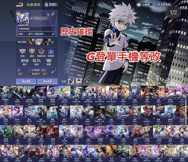 【Garena帳有綁定、璀璨傳說、V9、125英、446造】奇犽 鋼鐵 覺醒5 星際 450造+5🌹3🈵 25🍊2🍊 近v10連決勝