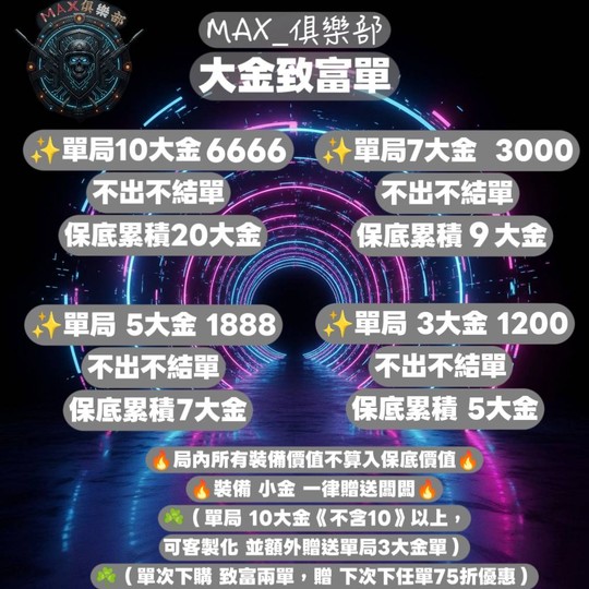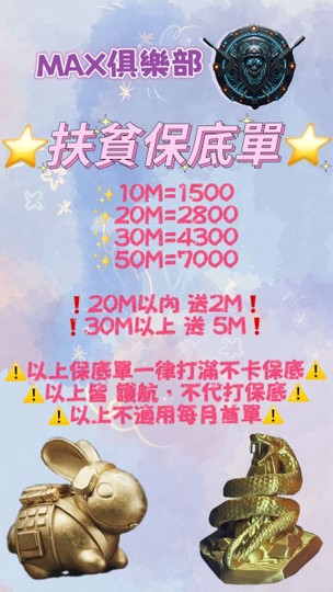 (純陪玩 扶貧 不含任何大金 鑰匙房 撤離 保底)