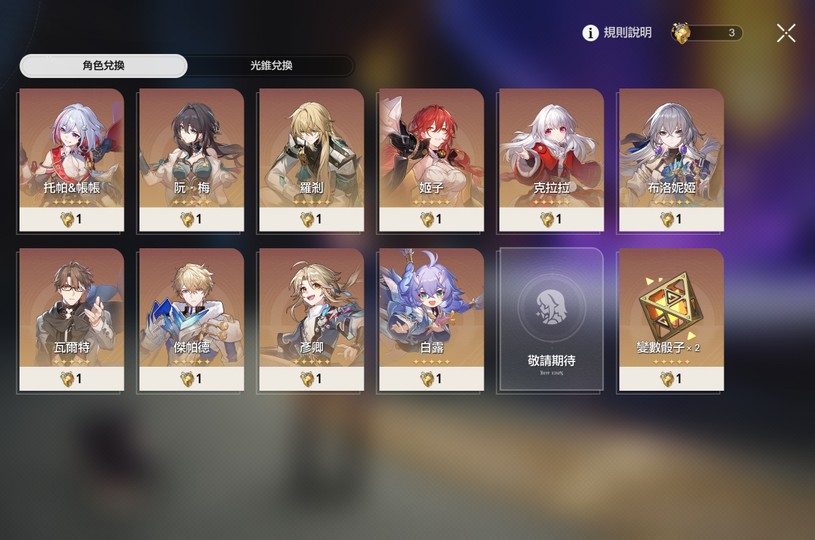 還有3金靈、8光錐碎憶、27自塑及複數骰子等,培養角色沒壓力