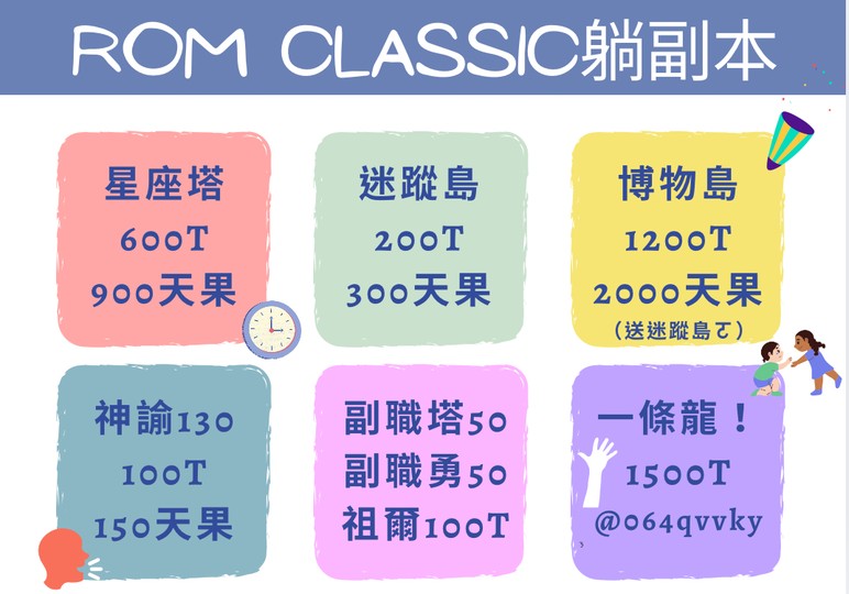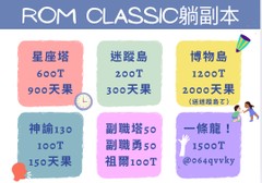 ROMClassic🏆躺副本通關車🏆大腿帶飛🦵輕鬆躺過✅