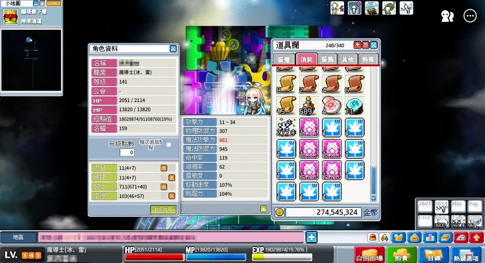 【141等、魔導士(冰雷)_大魔導士】一手帳號 自動放BUFF全開 四轉秒天秒地
