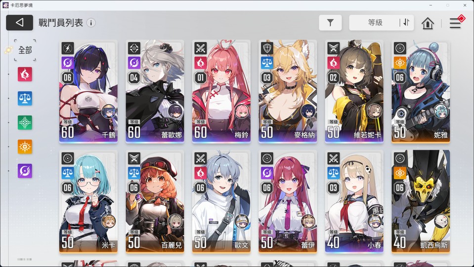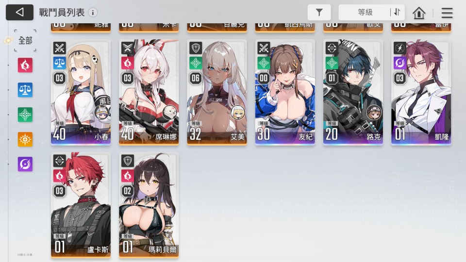 吉亞拉*2 尼克絲*1 澤塔*1 艾莉卡*2 緹娜*1 伊塚(滿)