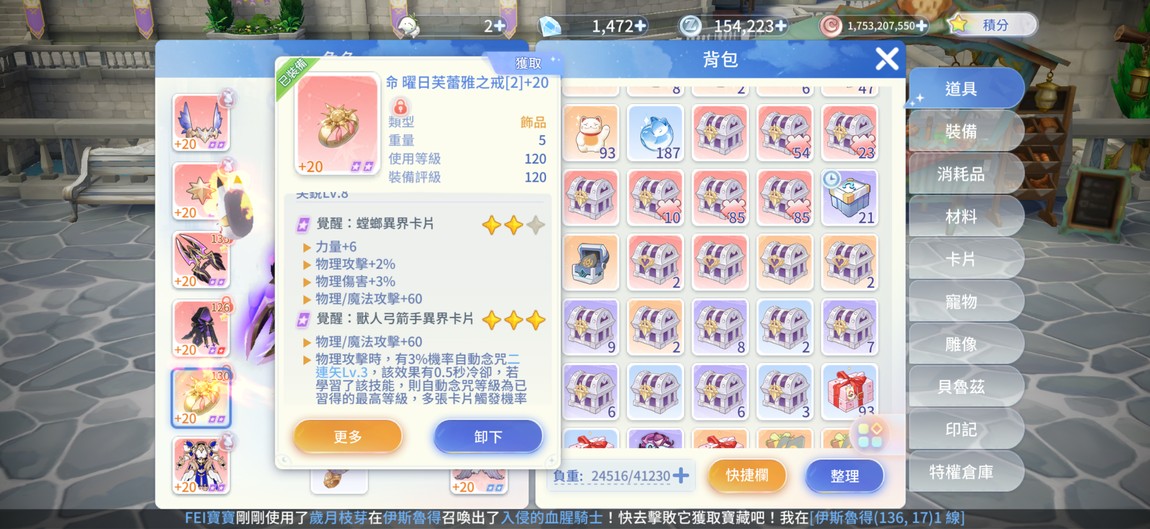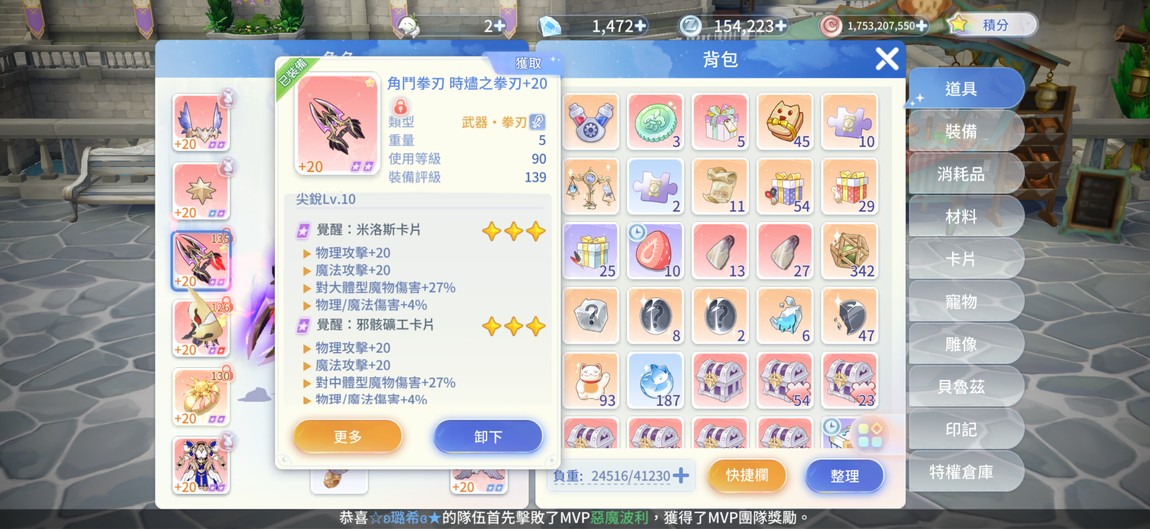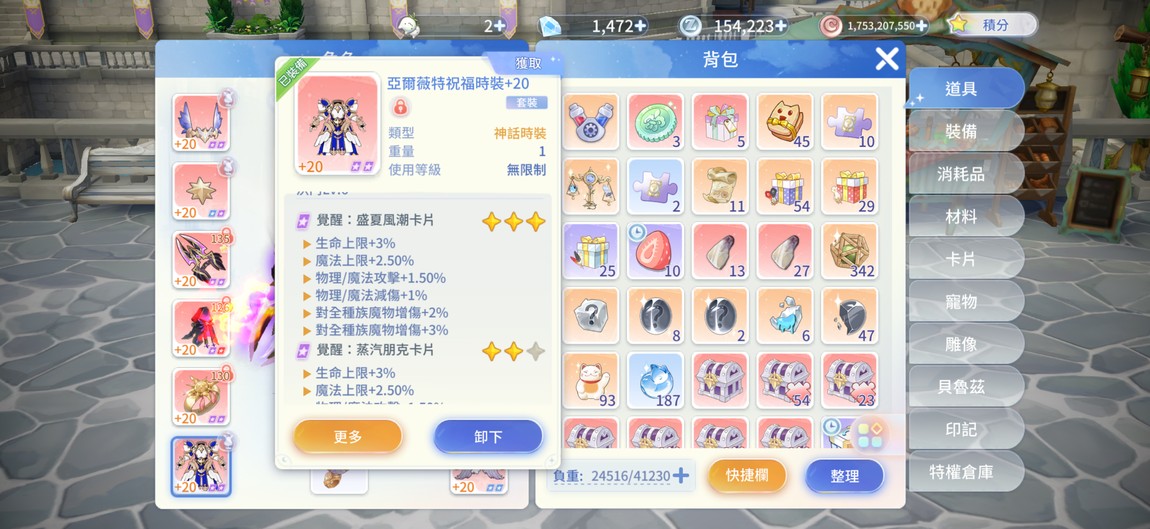 卡都買好買滿,服飾抽很多摩羯座射手座都有還有一堆,全身+20紅裝,已設定完畢 坐騎有很多 戰力目前97萬。雙永恆卡加月卡