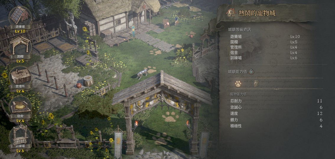 【寵物城】:管理所Lv4、宿舍Lv4、訓練場Lv8、遊樂場Lv10、圍欄Lv8