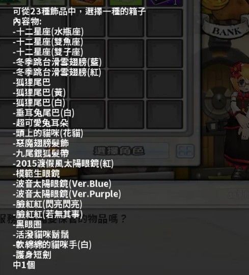飾品選擇箱(23種選1)兔耳、兔尾巴、惡魔翅膀、九尾銀狐髮帶、臉紅紅、太陽眼鏡等
